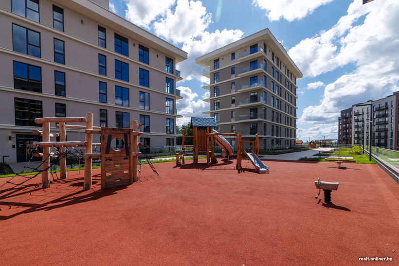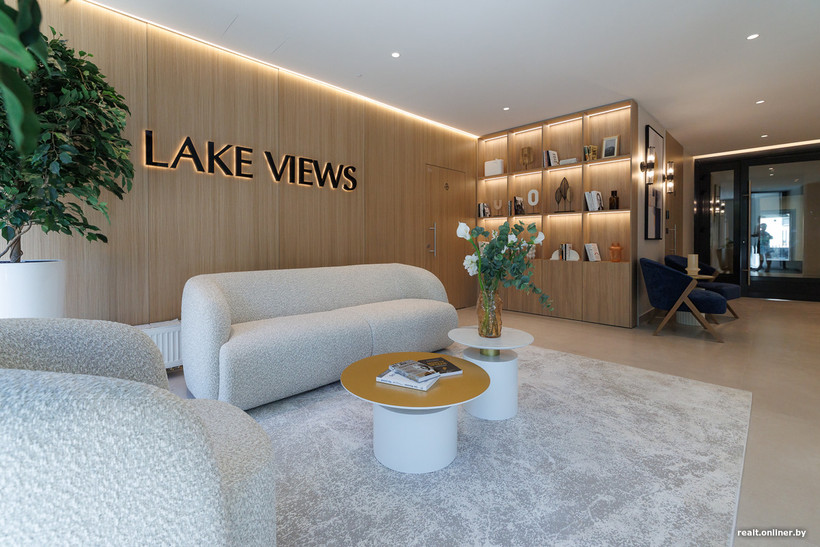 Нагадаем, Lake Views — гэта тры рознаўзроўневыя «слупкі» вышынёй ад 6 да 8 паверхаў, якія літаральна стаяць на беразе Цнянскага вадасховішча. Яны аб'яднаныя стылабатам. На першым паверсе новабудоўлі ёсць пакой для калясачак, лапамыйка, санвузел, а таксама персанальныя кладоўкі, якія ідуць у падарунак пры куплі кватэры. На першым паверсе дома прадугледжаны кватэры з тэрасамі. З аднаго боку яны выходзяць на вуліцу і парк, а з другога — проста на стылабат. Ён служыць дваровай тэрыторыяй і зонай адпачынку, куды могуць патрапіць толькі жыхары. Там ёсць зона барбекю, зялёныя зоны з лаўкамі, усталявалі дзве дзіцячыя пляцоўкі — для дзяцей старэйшага і малодшага ўзросту.