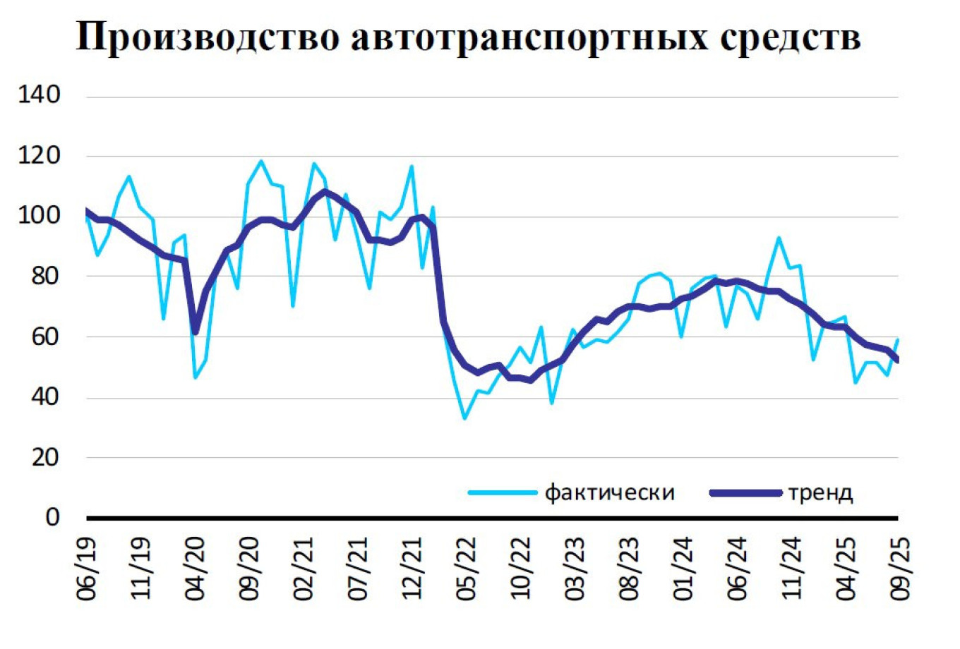 Па выніках студзеня–верасня вытворчасць аўтамабіляў у Расіі абвалілася на 20% і вярнулася да самых нізкіх узроўняў 2022 года, вынікае са статыстыкі Расстата. Спад у аўтапраме паскараецца кожны квартал: у студзені–сакавіку гэта было 9,2% год да года, у другім квартале — 23%, у трэцім — 26,7%.