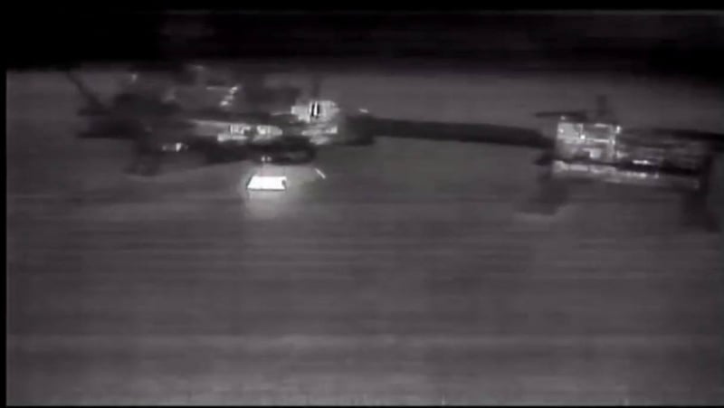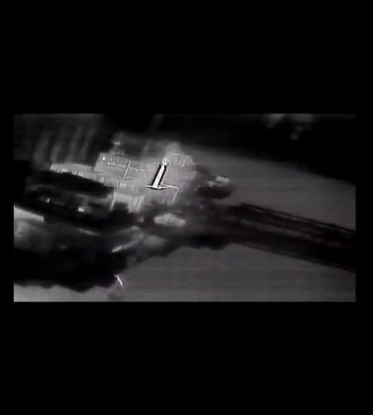 Бортавая камера беспілотніка зафіксавала паспяховае траплянне ў раён газатурбіннай устаноўкі платформы, што з'яўляецца крытычным элементам яе працы.