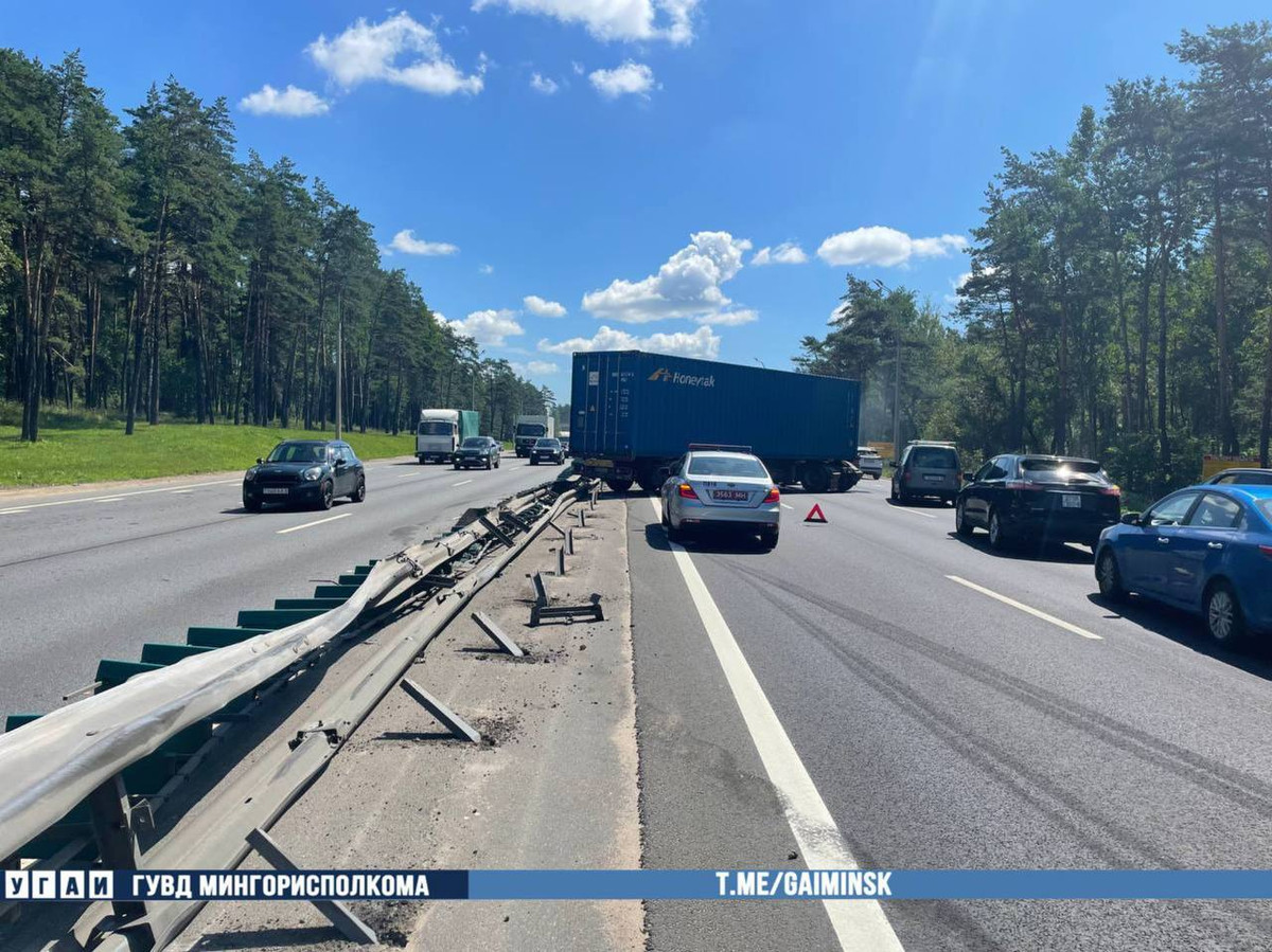 Мяркуючы з фота, адразу некалькі палос перацятыя грузавым аўтамабілем, пашкоджаная раздзяляльная агароджа, піша onliner.by.