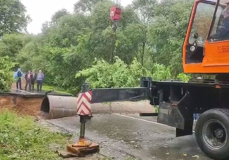 Працоўныя цяпер аднаўляюць дарогу, у тым ліку выкарыстоўваючы спецыяльную тэхніку. Віцебшчына сур'ёзна пацярпела ад непагадзі.