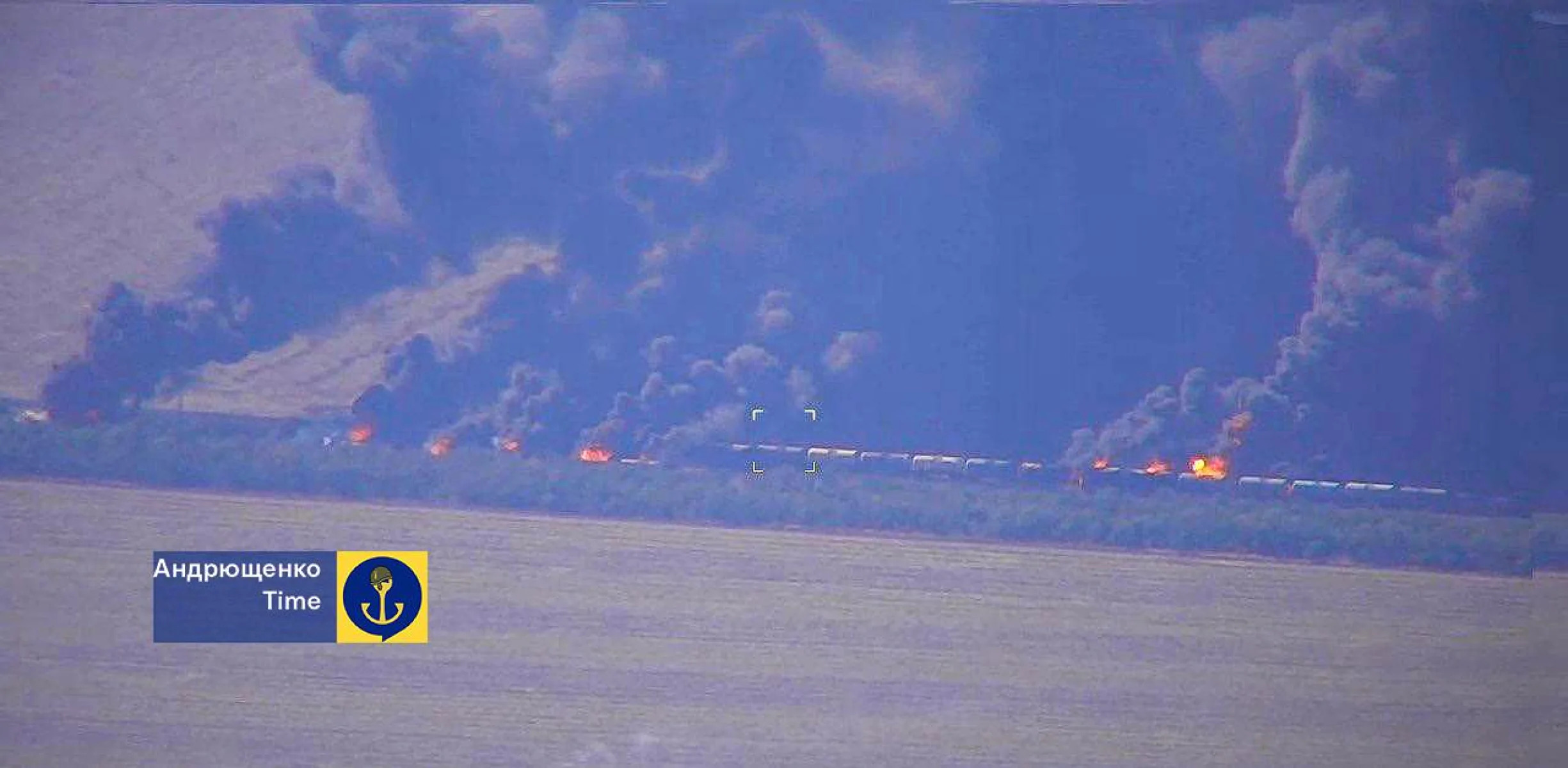 «Эпічныя кадры знішчэння грузавога цягніка з цыстэрнамі. Нічога жывога не засталося», - запэўніў Андрушчанка.