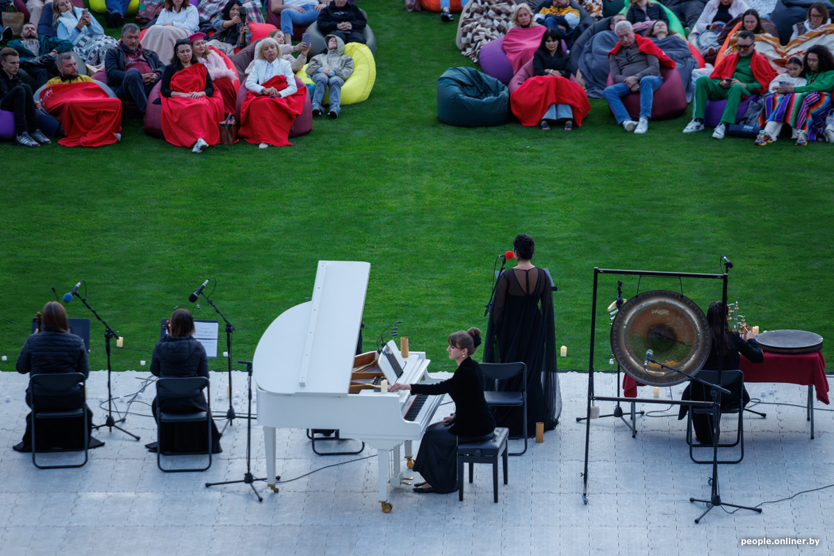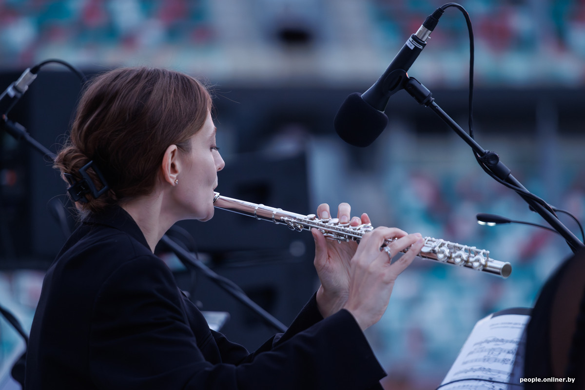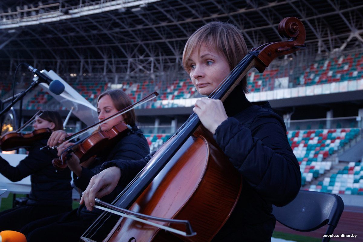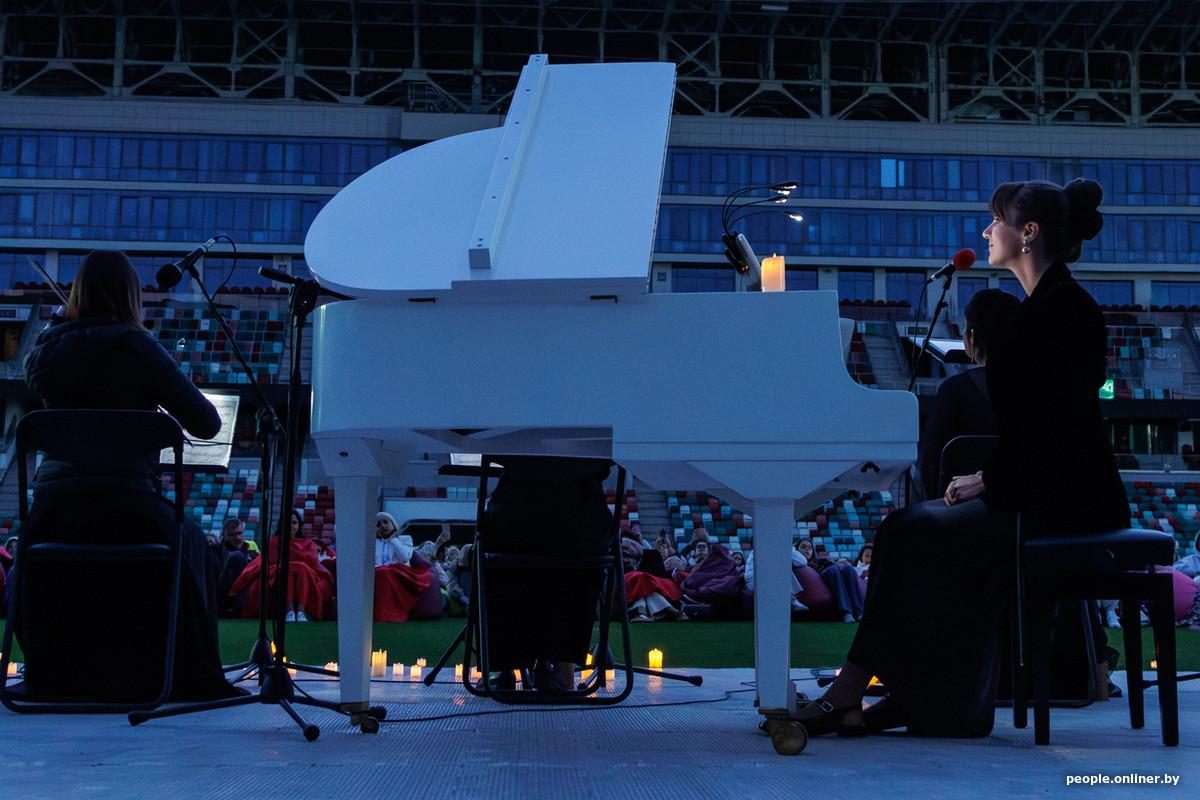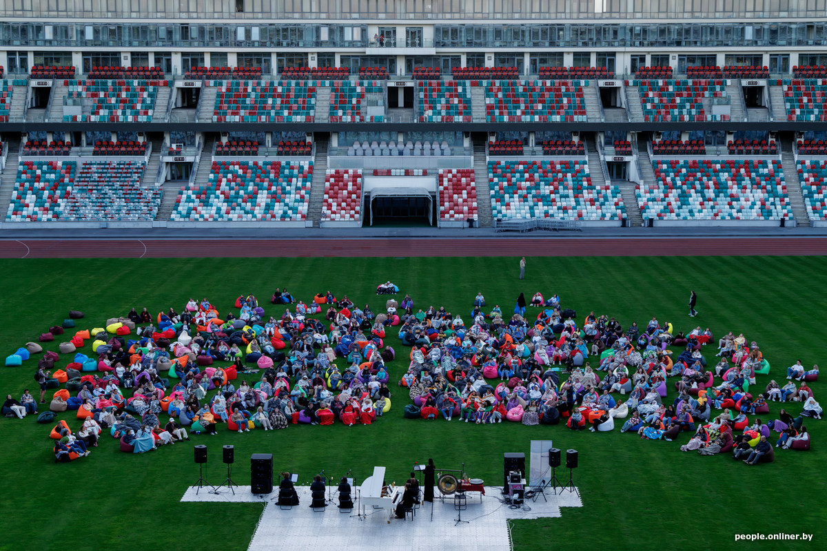Увечары ў чацвер на стадыёне «Дынама» прайшла нетыповая імпрэза. Калі да матчаў, іх прагляду на вялікім экране і музычных фестывалях мы даўно звыклі, то канцэрт класічнай музыкі з гледачамі, якія размясціліся проста на газоне, адбыўся тут упершыню. Наш фатограф пабываў на «Музыкатэрапіі» — Onlíner дзеліцца атмасфернымі фота.