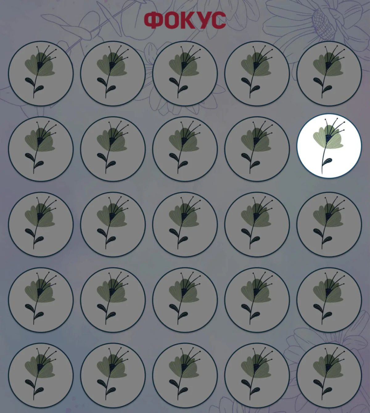 Так как — Вам удалось найти отличный цветок от других? Сколько времени вам понадобилось? Пишите в комментариях или делитесь головоломкой с друзьями!