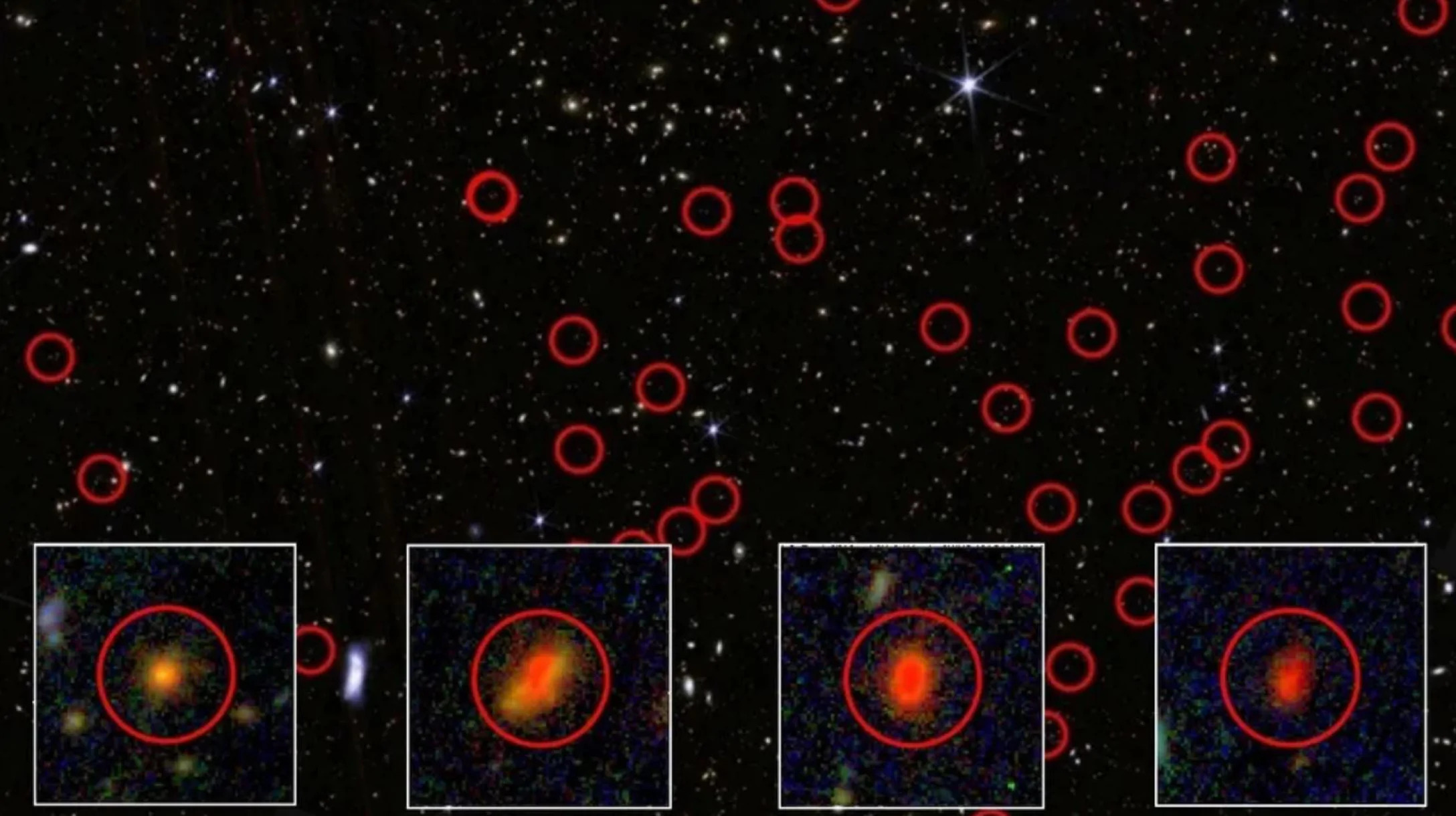С помощью космического телескопа Уэбб астрономы обнаружили в ранней Вселенной 300 очень ярких объектов, которые могут быть одними из первых галактик. Но астрономы пока точно не уверены что это такое.
