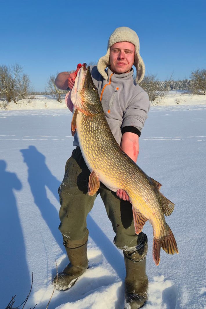 Моцны мароз сапраўднаму рыбаку не перашкода, бо злавіць трафейную рыбу можна нават у студзеньскую сцюжу. У чарговы раз гэтае правіла пацвердзілі беларускія рыбакі, якія 18 студзеня ў Дняпры вылавілі велізарнага шчупака, паведамляе fishingby.com.