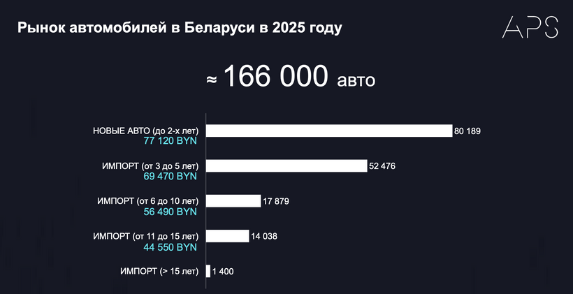 Так, у 2025 годзе ў Беларусь было ўвезена і рэалізавана каля 166 000 аўтамабіляў. Пры гэтым 29 305 машын выраблена ў Беларусі.