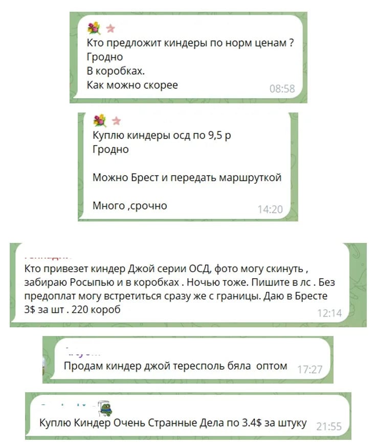 Тады Аляксей пачаў вывучаць Telegram-чаты. Высветліў, што прадаўцы гатовыя сустракацца з пакупнікамі «адразу з мяжы», прадаваць паасобку або каробкамі і нават працаваць без перадаплаты. Аляксей купляць яйкі праз чаты не стаў.