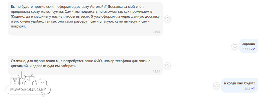 Дзяўчына прапанавала скарыстацца паслугамі адной з кампаній па дастаўцы і запэўніла, што гродзенцу няма пра што турбавацца: спецыяліст прыедзе, разбярэ шафу, упакуе і даставіць у Жодзіна.