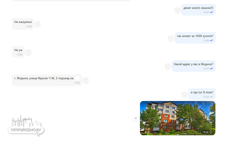 — Пасля пытання, дзе тут восьмы паверх, «пакупніца» выдаліла перапіску і знікла, — адзначыў гродзенец.