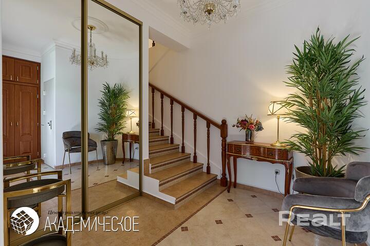«Жылая частка — два аўтаномныя паверхі з пяццю пакоямі, двума майстар-спальнямі, прасторнай кухняй, гардэробнымі і сучаснай гасцінай-сталовай-кухняй з панарамнымі вокнамі. Чатыры санвузлы: адзін VIP — з ваннай, бідэ і душавой кабінай. Два — з ваннамі і бідэ. Адзін — з душавой кабінай», — пазначана ў аб’яве.
