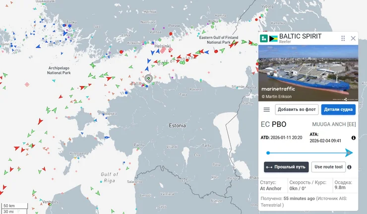 Эстонія затрымала судна Baltic Spirit з кантрабандай для РФ: новыя падрабязнасці
