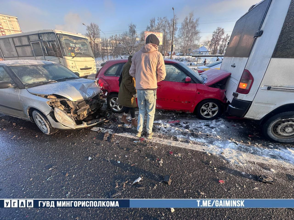 Як паведамляе Дзяржаўтаінспекцыя, аварыі адбыліся ў выніку невыканання кіроўцай Toyota бяспечнай дыстанцыі. З той жа прычыны пашкоджанні атрымалі Mercedes і два аўтамабілі Skoda.