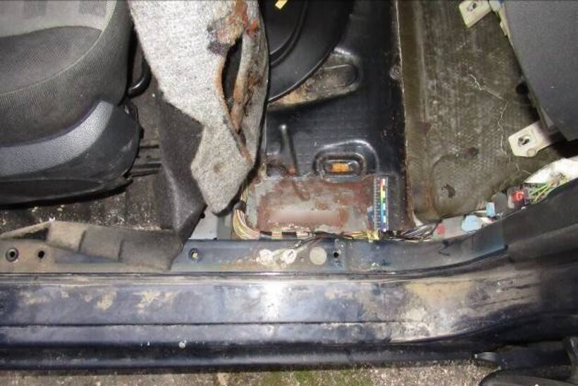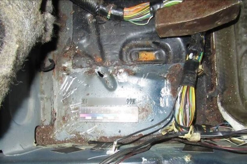 — Экспертыза паказала, што маркіроўка кузава падвергнулася сур'ёзным зменам: на арыгінальную нумарную пляцоўку была прымацавана металічная пласціна з нанесенымі на яе другаснымі (падробленымі) сімваламі. У ходзе даследавання эксперту ўдалося ўстанавіць сапраўдны ідэнтыфікацыйны нумар аўтамабіля, — паведамляе падрабязнасці ДКСЭ.