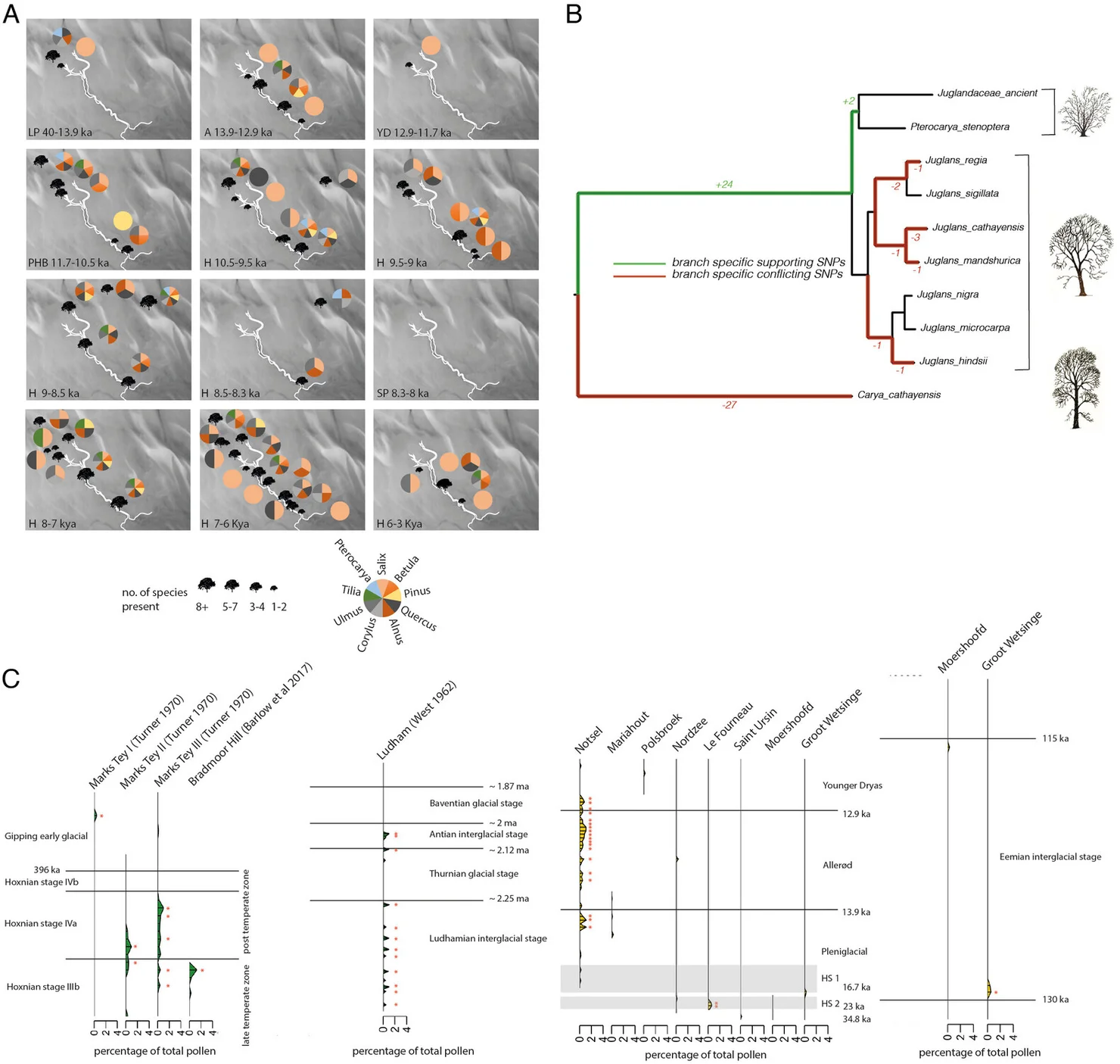 Яшчэ адно паказальнае адкрыццё датычыла роду дрэў Pterocarya, які з’яўляецца сваяком арэхавых дрэў. Генетычныя сляды гэтай расліны знайшлі ў адкладах, хоць навукоўцы лічылі, што яна знікла з паўночна-заходняй Еўропы каля 400 000 гадоў таму. Яе прысутнасць паказвае, што гэты від, магчыма, выжыў у рэгіёне значна даўжэй, чым чакалася.