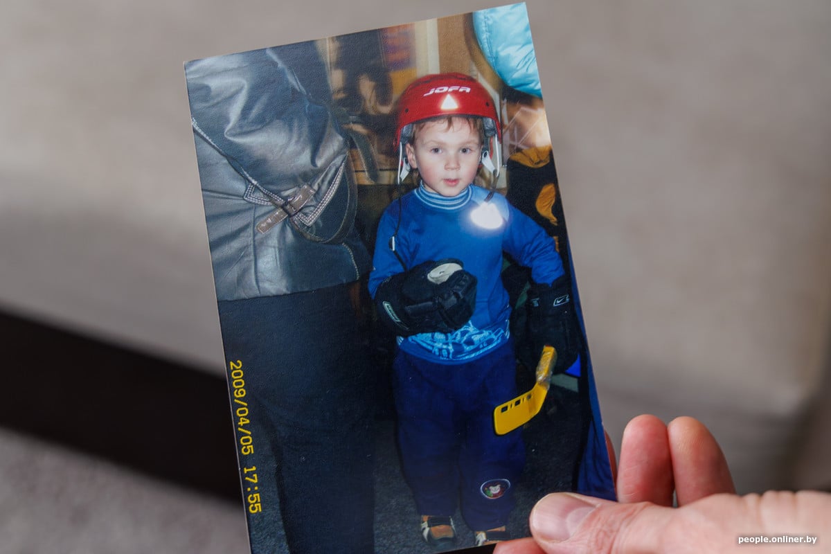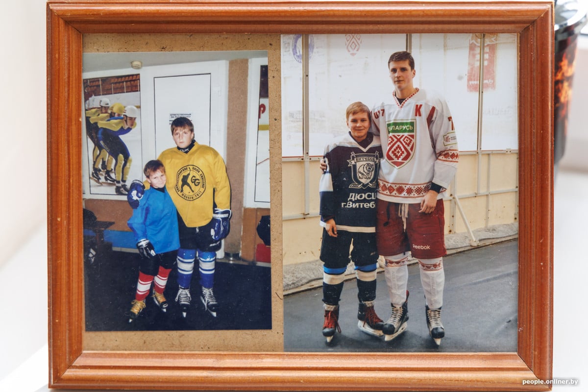 — Хоць была цікавая гісторыя. Мы ўпершыню прывялі яго на хакей у 6 гадоў. Сядзім на трыбуне і назіраем, як трэнер катае яго па пляцоўцы. І як толькі трэнер адцягваўся, ён станавіўся ў борціка і пачынаў ківаць галавой: маўляў, не хачу катацца, сыходжу. Потым мы ў яго спыталі: «Ты хочаш быць хакеістам?» — і ў адказ пачулі: «Так, але на лёд выходзіць не хачу». У выніку ён пачаў хадзіць у секцыю з 7 гадоў, і ў яго ўсё атрымалася.