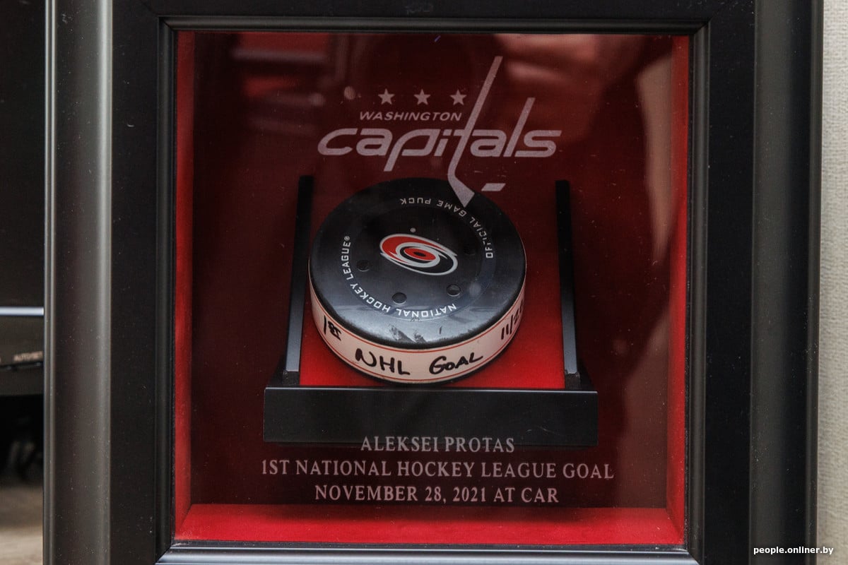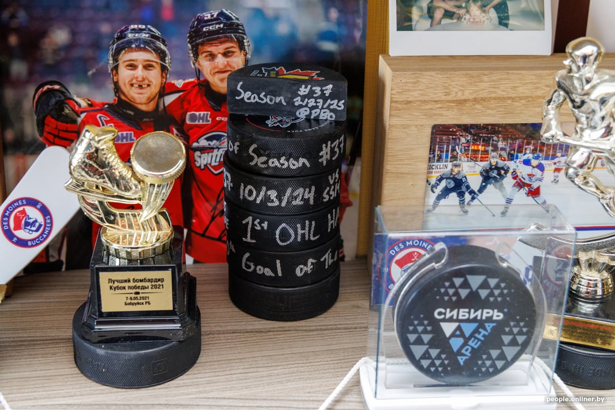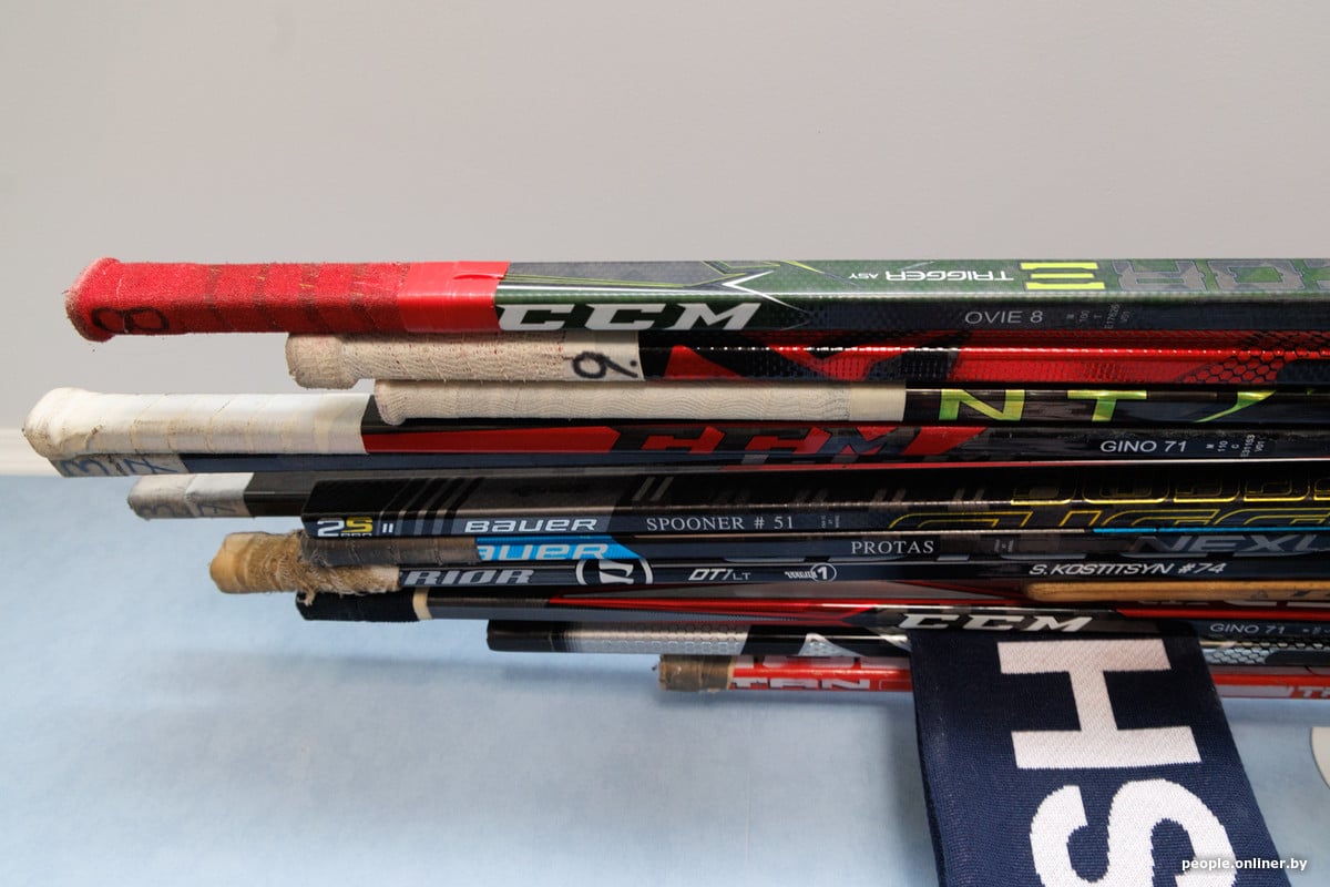 Зайшоўшы да Іллі, мы бачым калекцыю хакейных світаў і клюшак — адна з іх належала легендзе «Вашынгтона» Аляксандру Авечкіну. Вось яна, зверху стоскі: