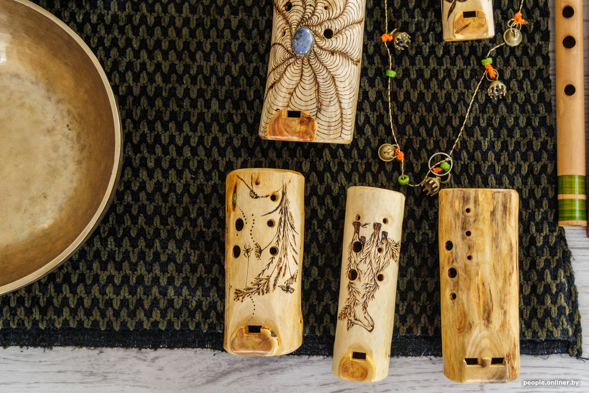 Па гэты эфект — расслабленне, лёгкасць у целе — людзі і прыходзяць на музычныя медытацыі, перакананы Іван. Сёння ў ягонай калекцыі музычных інструментаў — спяваючыя міскі, розныя флейты (японская, індыйская, кітайская), званочкі, чакрафоны, калімба. Але асаблівае месца займаюць драўляныя акарыны, якія музыкант робіць сваімі рукамі, — гэта флейта, што нагадвае свістульку.