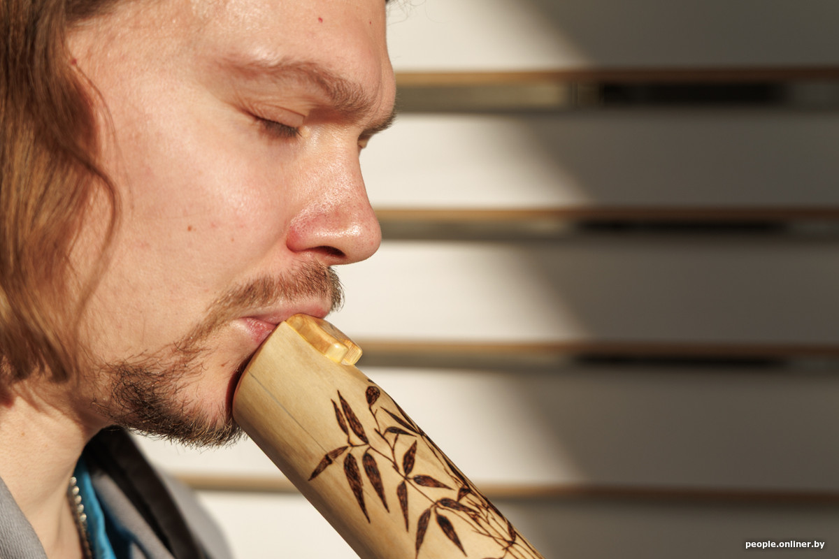 — Тры дні мучыўся, амаль дайшоў да адчаю. Але цікавасць і велізарнае жаданне перамаглі ўсе гэтыя сумневы. Складанасць гульні на флейце сякухаті ў тым, каб паставіць губы так, як у звычайным жыцці мы не робім. І мышцы, адпаведна, напружваюцца не тыя, да гэтага трэба прывыкнуць. У пэўны момант у мяне ўсё ж атрымалася здабываць з інструмента розныя гукі.