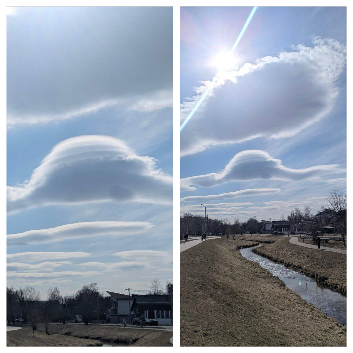 Тэлеграм-канал «Метэавайб» апублікаваў фатаграфіі ад падпісчыкаў, зробленыя ў Мазыры і Магілёве, назваўшы тое, што на іх адлюстравана, лінзападобнай воблачнасцю.