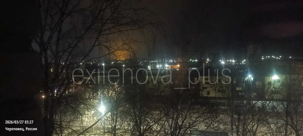 У Чарапавцы Валагодскай вобласці РФ уначы на 27 сакавіка чуліся выбухі. Мясцовыя ўлады паскардзіліся на атаку БПЛА на прамысловую зону Чарапавца і на «падзенне абломкаў».