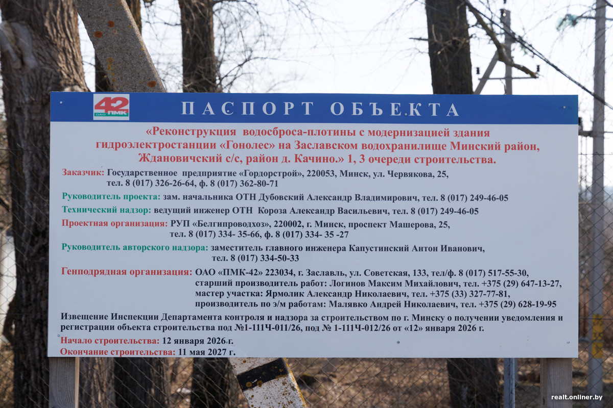 Дамбу паставілі на рэканструкцыю. Сёлета працы працягнуліся. Афіцыйна яны называюцца «Рэканструкцыя водаскіду-плаціны з мадэрнізацыяй будынка гідраэлектрастанцыі «Гоналес» на Заслаўскім вадасховішчы». Заказчыкам рэканструкцыі выступае «Гордорстрой».