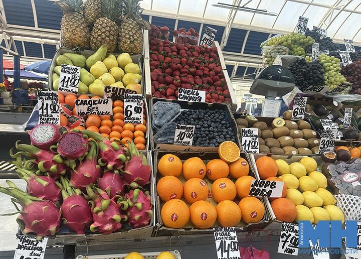 Салодкія апельсіны прадаюць ад 6,9 да 19,9 рубля за кілаграм, мандарыны — ад васьмі рублёў. На адным з самых вялікіх прылаўкаў прадстаўлены экзатычныя плады: тут можна знайсці драконаў фрукт за 19,9, буйныя буякі і «самалётныя» ананасы.
