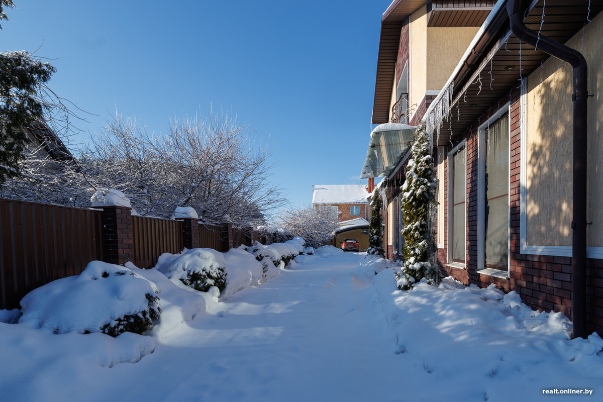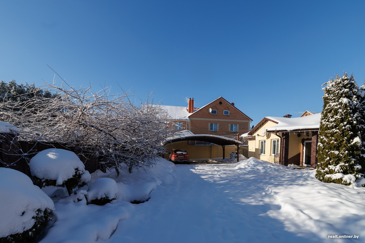 Таксама ў двары размясцілі крыты навес на некалькі машын (ёсць і зарадка на 3,5 кВт для электрамабіля), вальер для сабакі і гасцявы дом. Апошні, дарэчы, цяперашні ўласнік цалкам адрэстаўраваў. Унутры яго цяпер дзве амаль паўнавартасныя кватэры (адна без кухні і душавой).