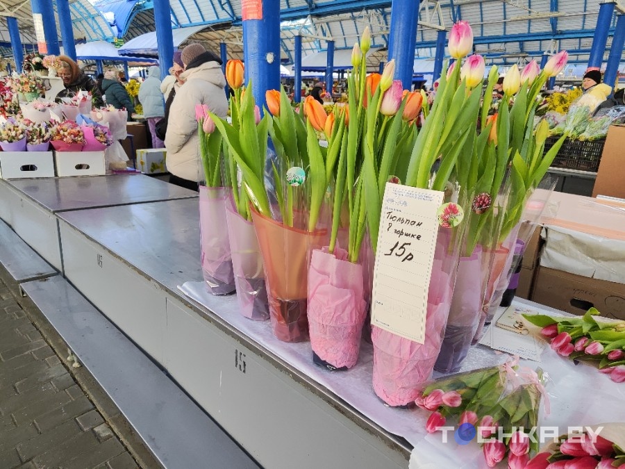 Цюльпаны вальяжна тырчаць з вядзер на рынках, у сеткавых крамах — тыя ж, але ў цэлафане; у падземных пераходах і каля вакзала таксама ажывіўся гандаль.