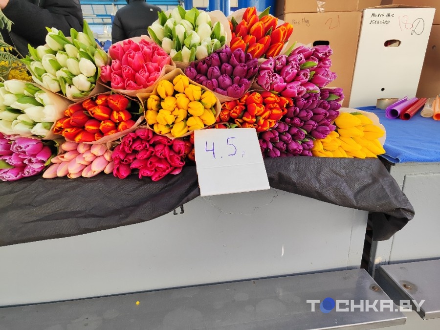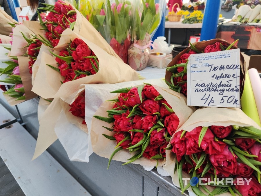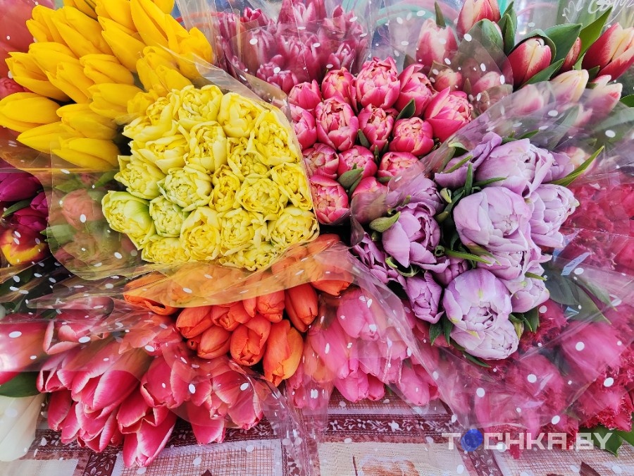 На галоўным рынку сталіцы — Камароўцы — прыкметнае ажыўленне. Прылавы літаральна тонуць у цюльпанах. Чырвоныя, белыя, жоўтыя, ружовыя — каляровая палітра такая, што вочы разбягаюцца.