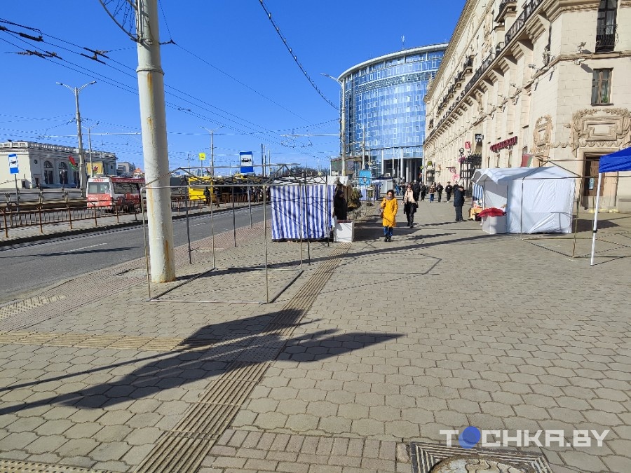 Ля выхаду з падземнага пераходу каля так званых «Варотаў Мінска» выбудвалася імправізаваная кветкавая лінія. Карціна хутчэй нагадвае правінцыйны базар дзесьці на ўскрайку, чым цэнтр сталіцы побач з вакзалам.