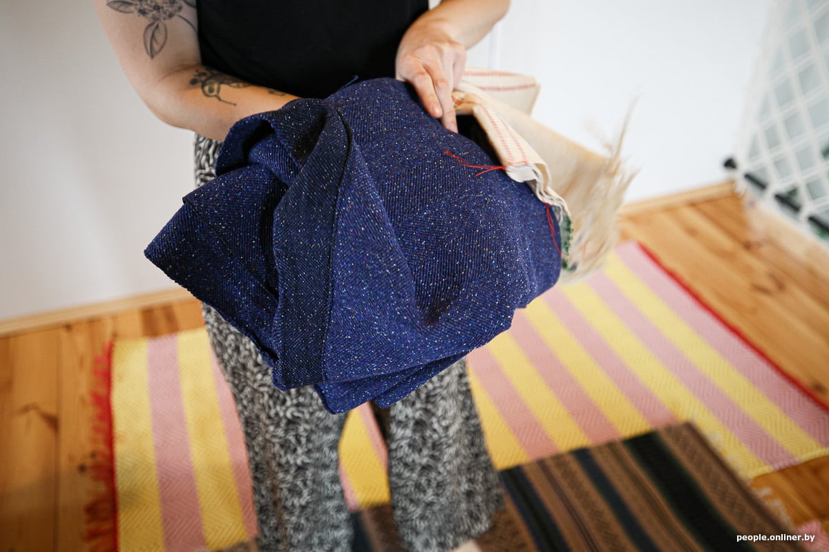 — У мяне ёсць бабуліна спадніца, крой якой мне вельмі падабаецца, а вось сам матэрыял — не. Гэта поліэстэр. Дык я вырашыла саткаць шэрснае палатно і зрабіць копію гэтай рэчы.