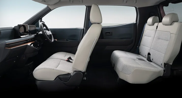 У салоне Nissan Sakura 2026 без змяненняў засталіся два экраны на пярэдняй панэлі і сэнсарныя кнопкі, але ўсталявалі дадатковыя падстаўкі для кубкаў і разеткі. Хэтчбэк разлічаны на чатырох чалавек і мае 107-літровы багажнік.