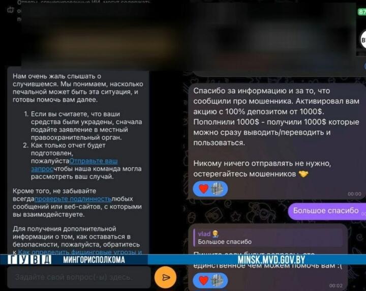 Устаноўлена, што мужчына ў адным з месэнджараў знайшоў тэматычную групу, прысвечаную заробку на інвестыцыях. Куратар самастойна аформіў для яго электронны кашалёк і пачаў даваць інструкцыі па папаўненні рахунку. Дзейнічаючы паводле ўказанняў суразмоўцы, мінчанін пералічыў на пазначаныя рэквізіты больш за 1000 долараў.