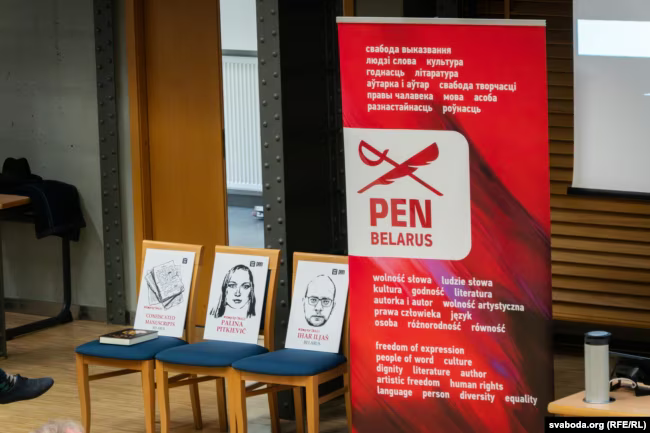 Увечары 20 красавіка ў вялікай гістарычнай зале Варшаўскага ўніверсітэта расставілі крэслы з партрэтамі беларускіх зняволеных, якія цяпер за кратамі: Анджэя Пачобута, Ігара Ільяша, Паліны Пяткевіч і іншых, а таксама сімвалічнае асобнае крэсла для рукапісаў, што засталіся ў турмах і, магчыма, там знішчаюцца.