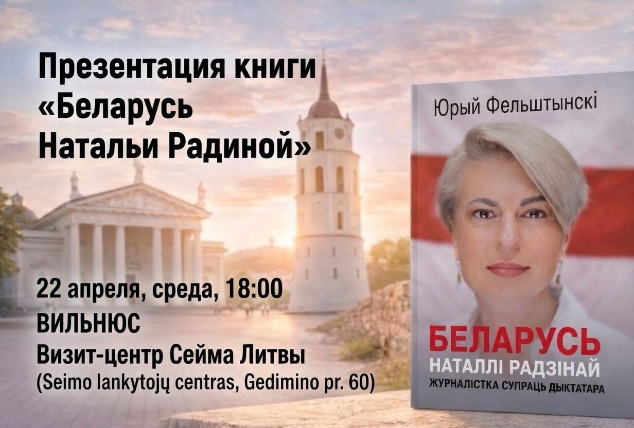 У візіт-цэнтры Сейма Літвы Seimo lankytojų centras, Gedimino pr. 60) у Вільнюсе прадставяць новую кнігу вядомага амерыканскага гісторыка і публіцыста Юрыя Фельштынскага «Беларусь Наталлі Радзінай: журналістка супраць дыктатара».