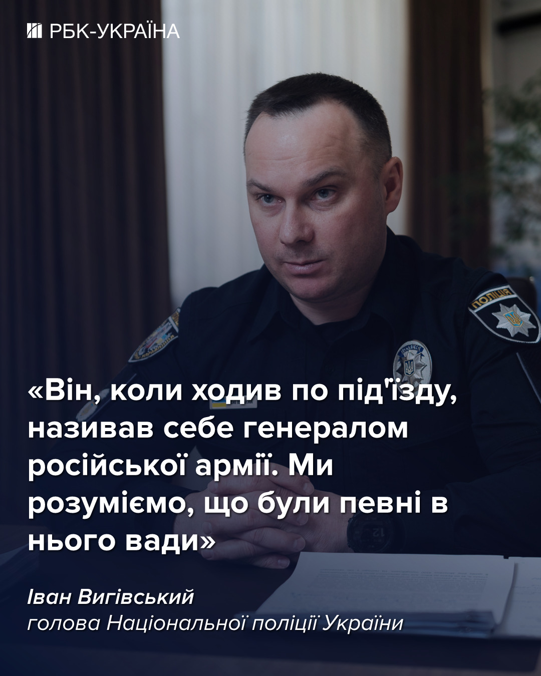 «Калі мы паглядзелі пэўныя файлы ў ягоным тэлефоне — ён там пастаянна здымаў сябе, калі страляў. Ён, калі хадзіў па пад'ездзе, называў сябе генералам расійскай арміі. Мы разумеем, што ў яго былі пэўныя недахопы», — сказаў Выгоўскі.