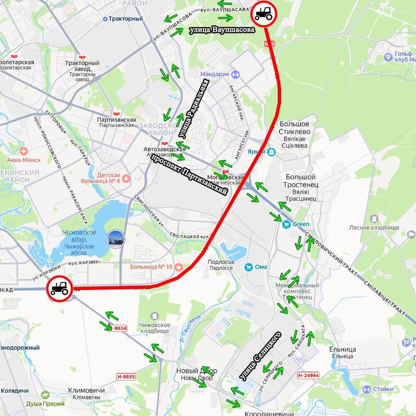 From December 1, the movement of tractors and self-propelled machines will be prohibited on one section of the Moscow Ring Road. The restriction will be in effect in both directions from the junction with the local passage of Vaupshasova Street and Lipkovskaya Street to the junction with Viktor Turov Street and the highway N-9034.