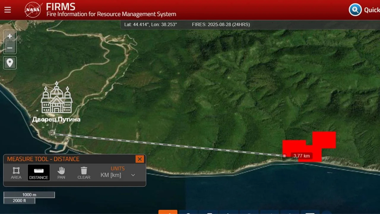 The fire near the village of Krinitsa broke out in the morning on Thursday, August 28, and as of Friday morning its area had expanded to 41.5 hectares. The village is located just ten kilometers in a straight line from Vladimir Putin's palace on Cape Idokopas. According to the publication "Important Stories" one of the hotbeds of fire may be 3-4 kilometers from the residence.