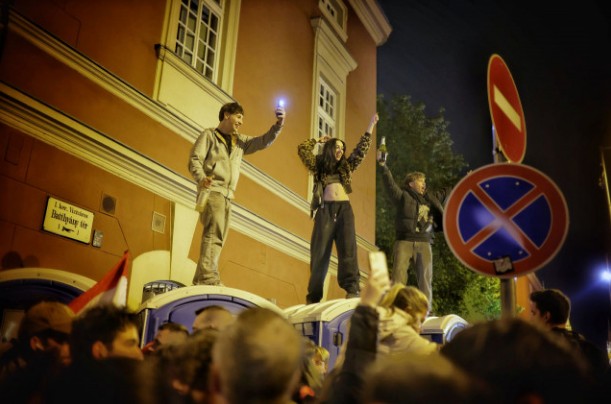 After the first vote counts left no doubt about the opposition Tisza's absolute victory, thousands of people staged celebrations in the streets of Budapest.