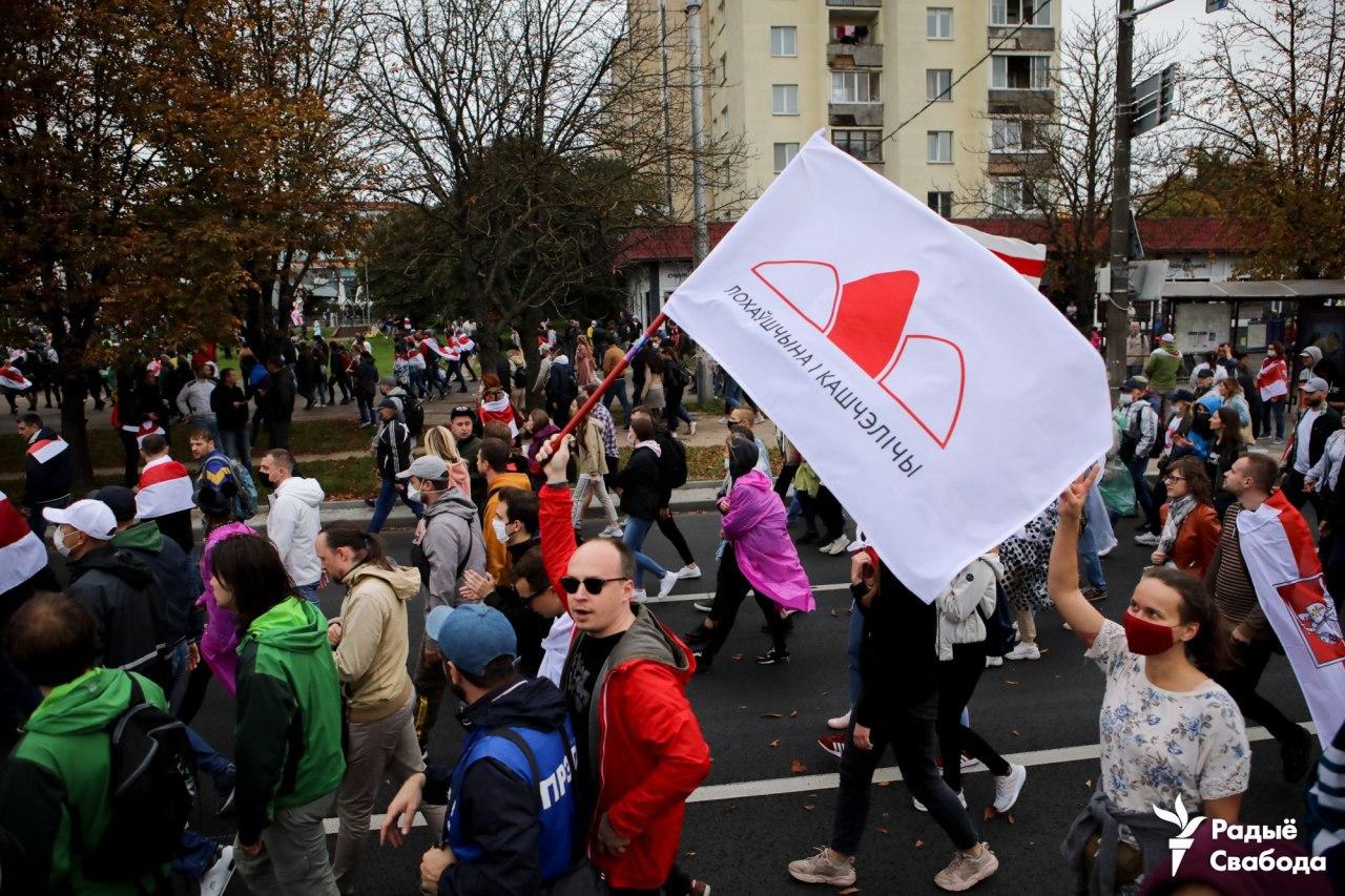 Многотысячная колонна дошла до Национальной библиотеки и идет дальше по проспекту.