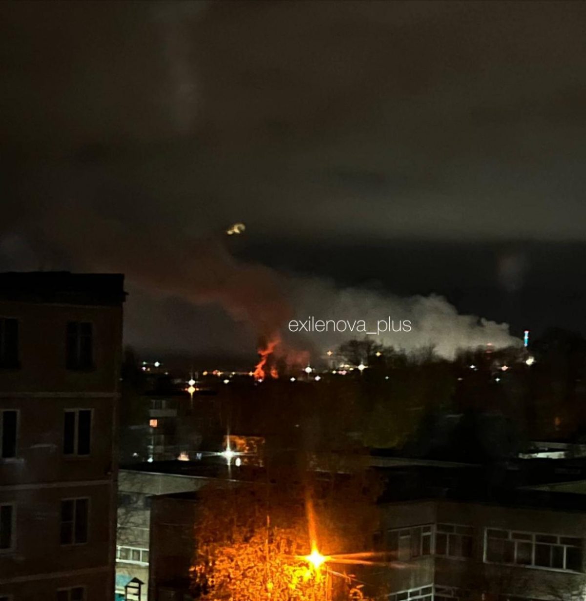 Местные жители говорят, что всего пролетело пять дронов. Три из них попали в завод «Азот». В результате на предприятии вспыхнул пожар.