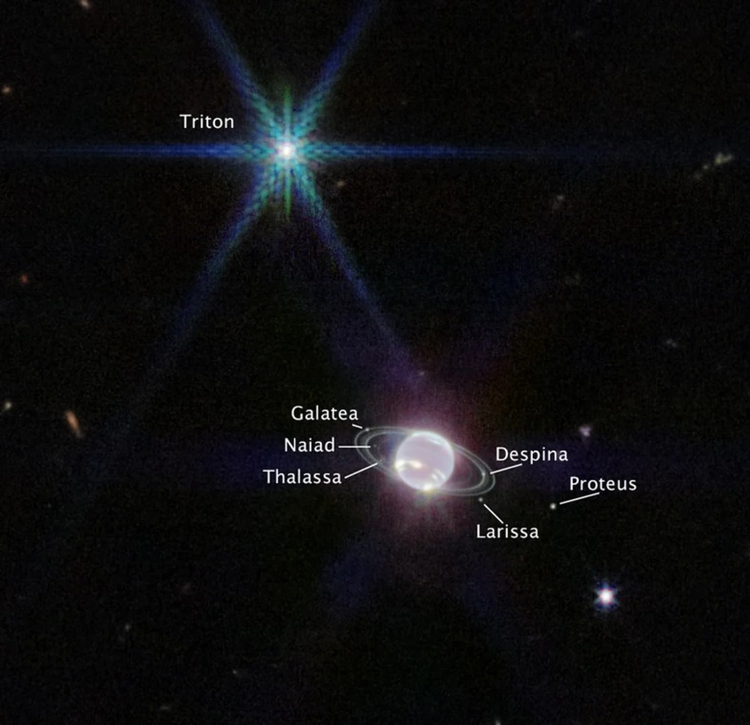 Несмотря на то, что Нептун находится в 30 раз дальше от Солнца, чем Земля, там существуют полярные сияния. На нашей планете они возникают из-за взаимодействия солнечных частиц с газами в атмосфере. Возможно, на Нептуне действует тот же механизм, хотя может быть полярные сияния связаны с выбросами части из гейзеров на Тритоне.