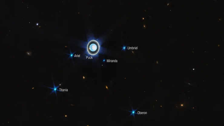 Пока что единственным космическим аппаратом, который изучал Уран с близкого расстояния, является «Вояджер-2». Зонд NASA пролетел мимо Урана в 1986 году. Тогда астрономы знали, что у Урана есть 5 спутников, но «Вояджер-2» обнаружил еще 11. За последние 39 лет ученые обнаружили еще 13 спутников и по состоянию на 2025 год у Урана обнаружено 29 спутников. Последний был обнаружен ранее в этом году.. Этот спутник, обозначенный как S/2025 U1 пока что является самым маленьким среди всех спутников Урана, ведь его диаметр составляет примерно 10 км. Самым большим спутником Урана является Титания — диаметр примерно 1577 км.