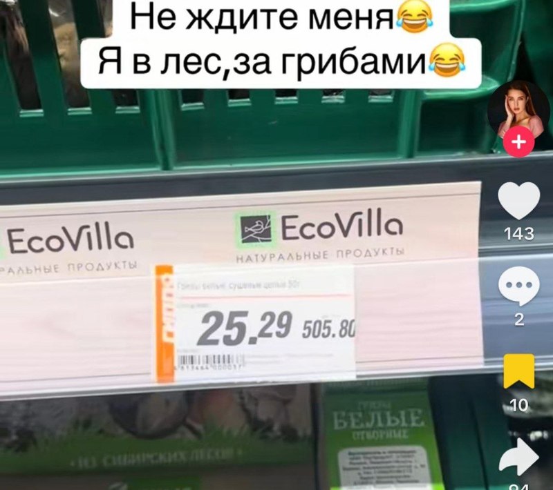 Белоруска нашла в магазине сушеные белые грибы по 505 рублей за килограмм. Упаковка в 50 граммов стоит чуть более 25 рублей. Видео она выложила в TikTok.