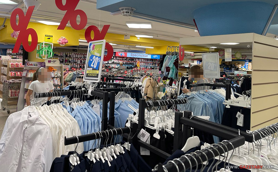 Журналисты прошлись по крупным универмагам – Торговый дом «На Немиге», ГУМ и ЦУМ, посмотрели, какой ассортимент одежды, обуви и других товаров для школьников они предлагают и какие цены. Оказалось, что даже в будние дни в отделах со школьными товарами очень оживленно, все примерочные заняты, в кассы стоят очереди.