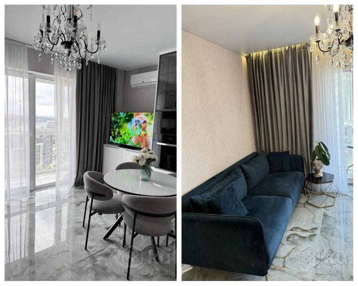 Квартира продается с мебелью и бытовой техникой, включая кухню, которая выполнена на заказ.