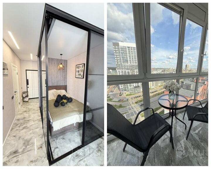 В Новой Боровой под Минском продается однокомнатная квартира-студия площадью 33 м². Жилье расположено на 14-м этаже 23-этажного панельного дома 2023 года постройки. В квартире дизайнерский ремонт, установлена встроенная техника и мебель, предусмотрены теплые полы и система «умный замок».