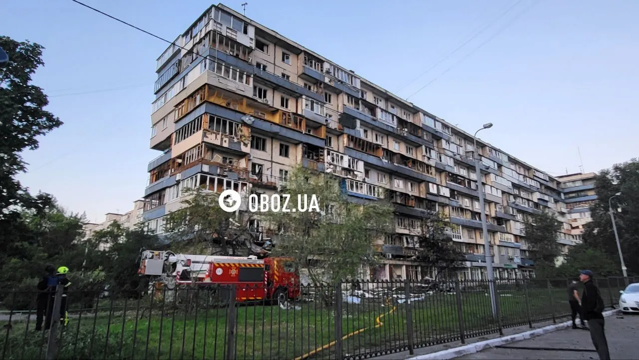 В Дарницком районе повреждены жилые дома, в том числе разрушения в пятиэтажке с первого по пятый этажи. Также обломки БПЛА упали на крышу 9-ти этажного жилого дома. Произошло возгорание.