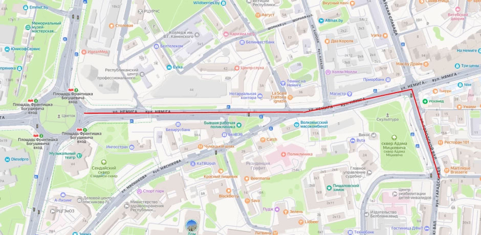 1 и 2 сентября – на улице Немига от Городского Вала до площади Богушевича.